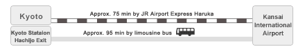 Kyoto is situated in the Kansai Region. With just over an hour by bullet train from Kansai Airport, it offers easy access to Osaka, Kobe, Nara and Shiga (Lake Biwako)